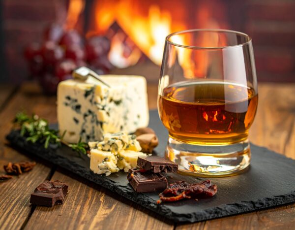 最もおすすめしたい組み合わせです。チョコの苦みがウイスキーの甘みを引き立て(対比)、お互いが持つカカオやベリー系の風味を高め合います(同調)。チョコレートの油分がアルコールの刺激を和らげ、口当たりをよりマイルドにしてくれる効果もあります。 - ブルーチーズ: