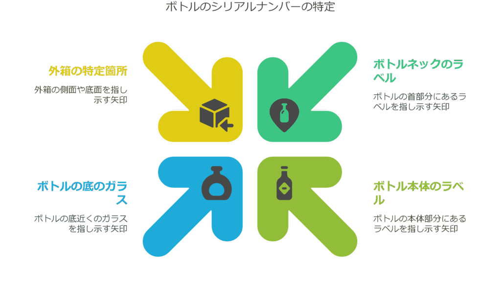 - シリアルナンバー: ボトルに記載されていることが多いです 。印字が鮮明か(可能な範囲で)確認しましょう。